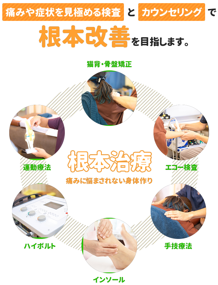 痛みの部分だけでなく、原因の元にアプローチし最良の状態が長持ちする施術を行います