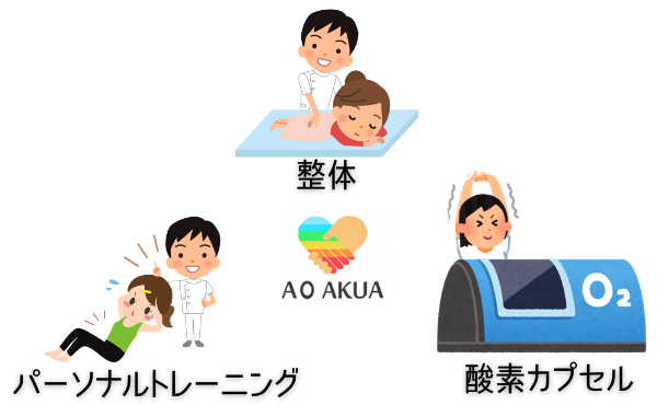 当グループで唯一酸素カプセルを導入している「アオアクア整体院」は多摩モノレール高幡不動駅徒歩1分にあるプライベートサロンの院です。完全予約制で整体、パーソナルト…