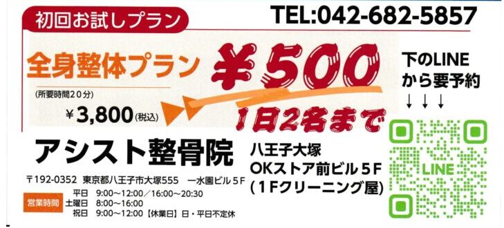 ※ご予約時に【お試し整体プラン】とお伝えください。