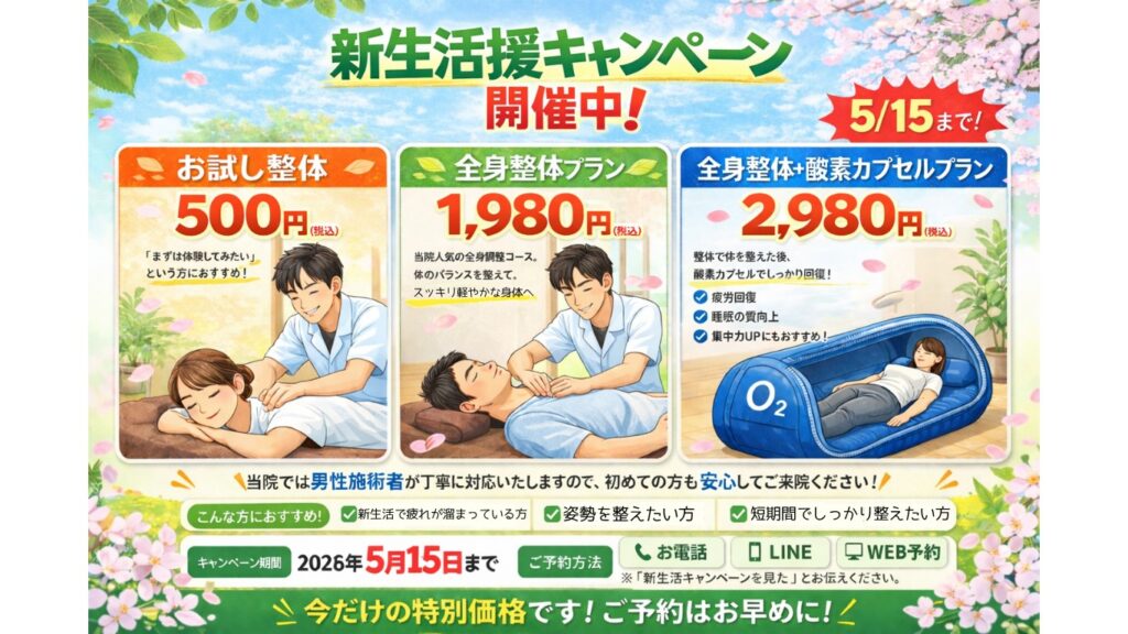 新生活でお疲れ方も、普段お疲れな方もお気軽にご相談ください。